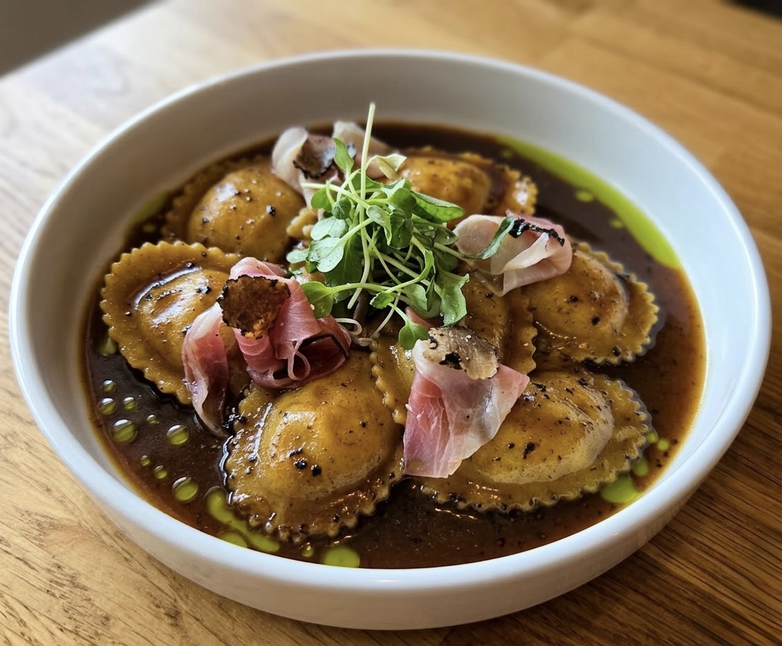 w sosie truflowym / prosciutto crudo / trufla / oliwa szczypiorkowa