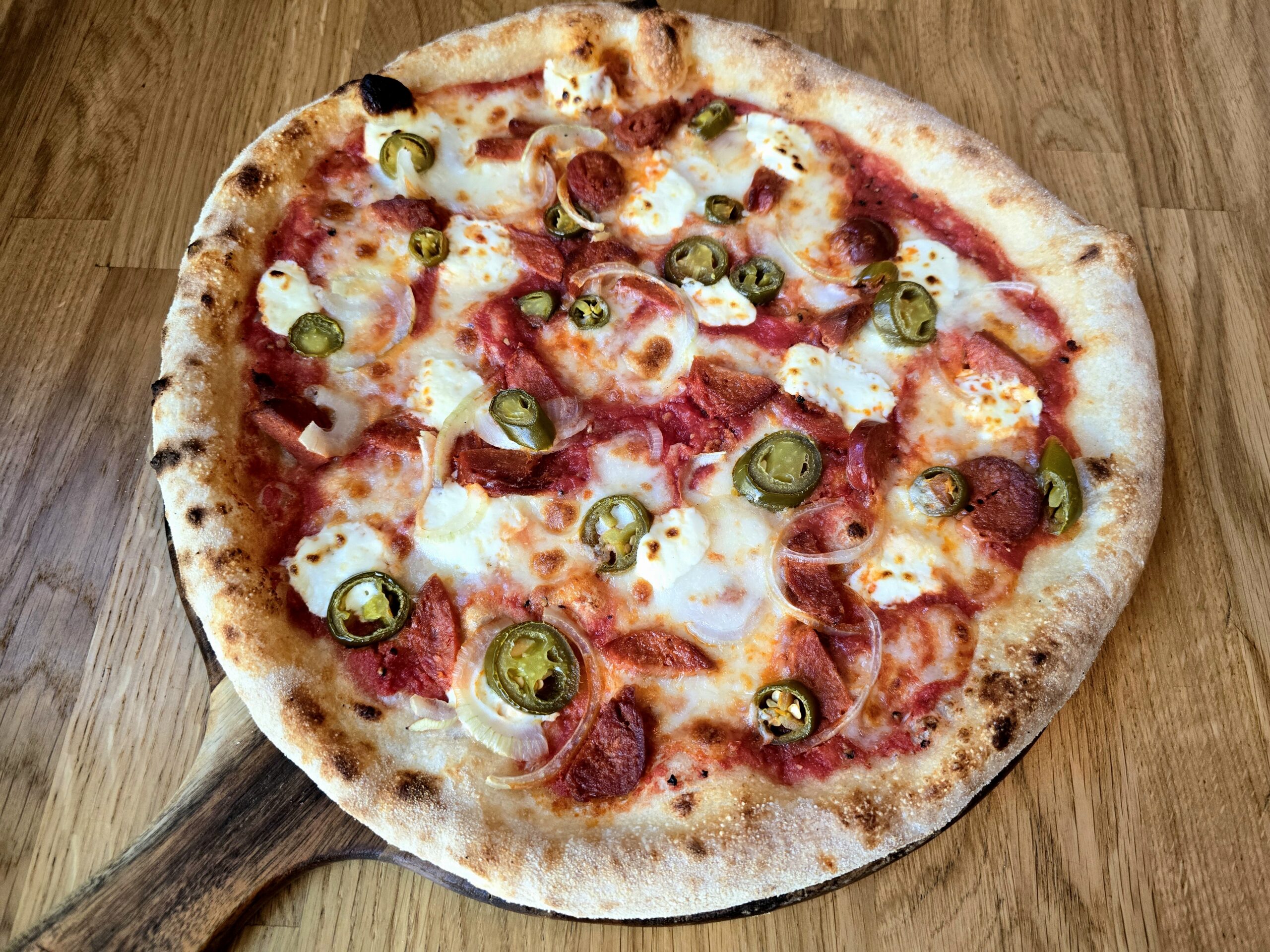 sos pomidorowy San Marzano / mozzarella fior di latte / chorizo / mascarpone / cebula / jalapeno