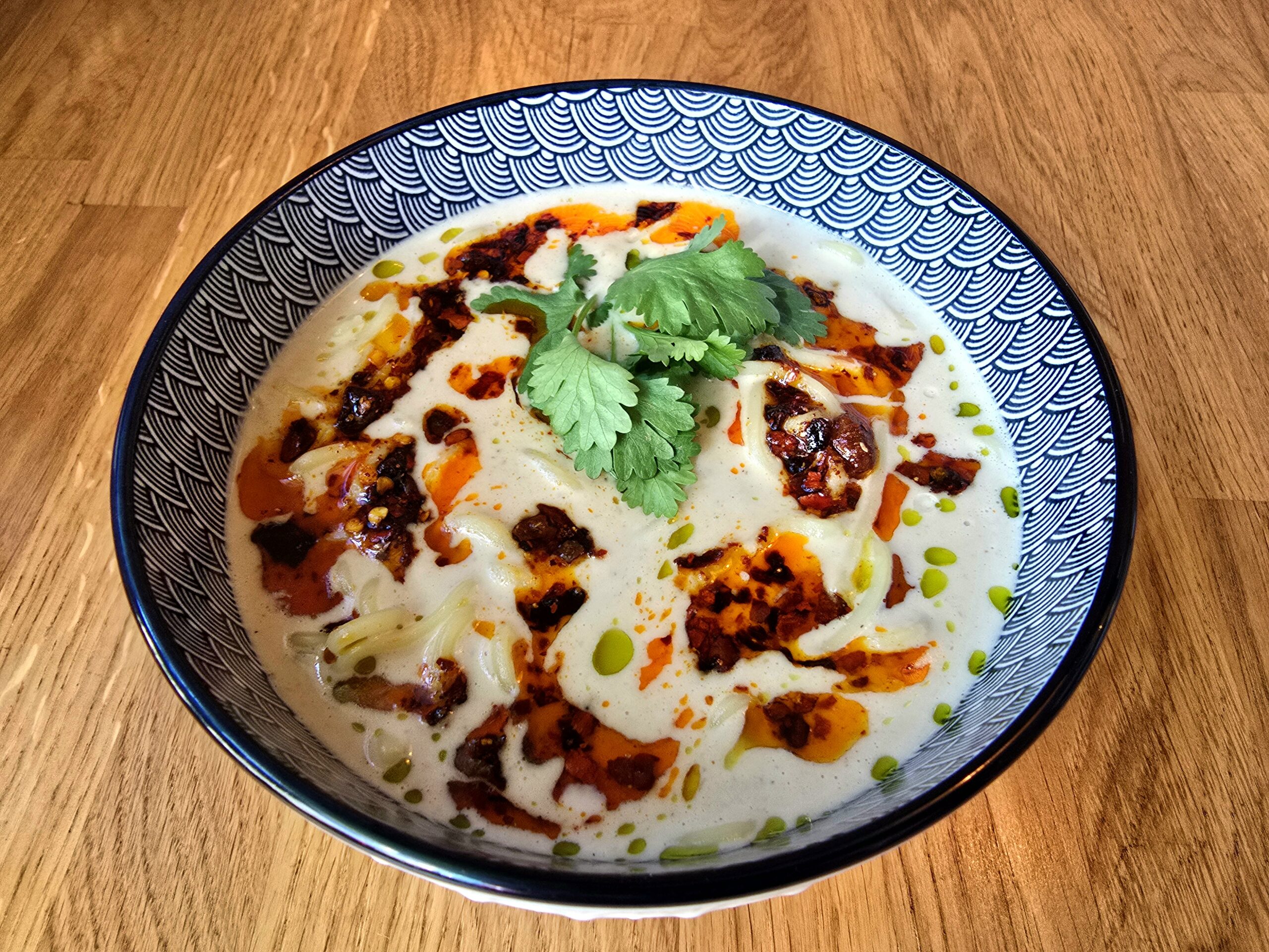 z masłem orzechowym / noodle / olej chilli / szczypiorek